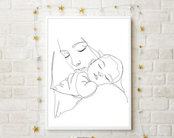 Nativity Art Digital Download- Printable Line Drawing of Mary and Baby Jesus